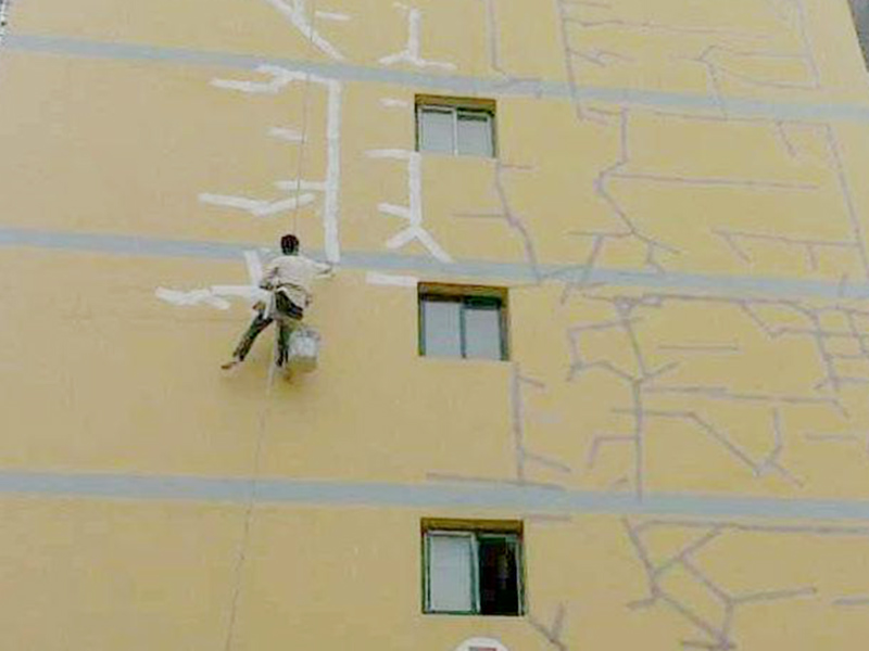 待封閉式面漆徹底干躁后,刷涂二遍外墻涂料。建筑涂料刷涂時(shí)嚴(yán)禁過多加水,特別是在是深色調(diào)的建筑涂料加水過多將會(huì)造成浮色發(fā)花等安全隱患。